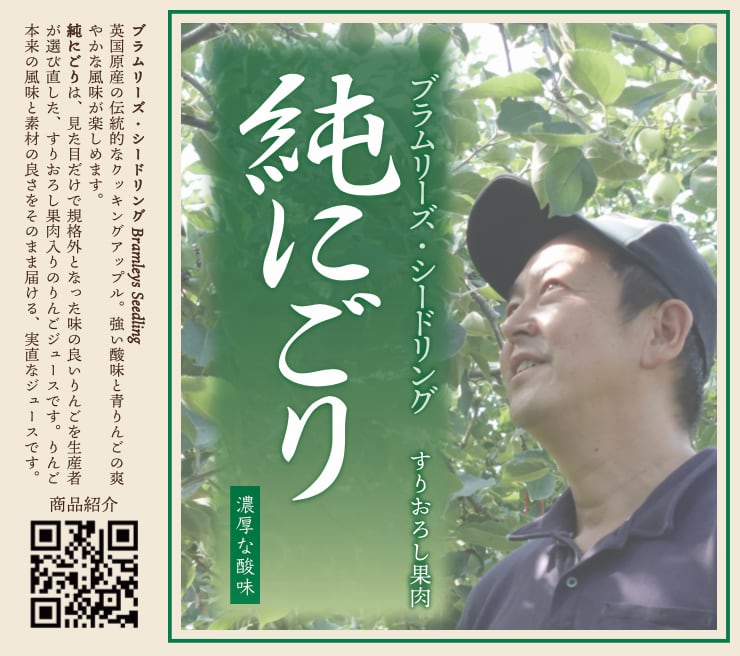 クッキングアップルの王様、イギリス原産「ブラムリーズ・シードリング」すりおろし果肉入りりんごジュース。